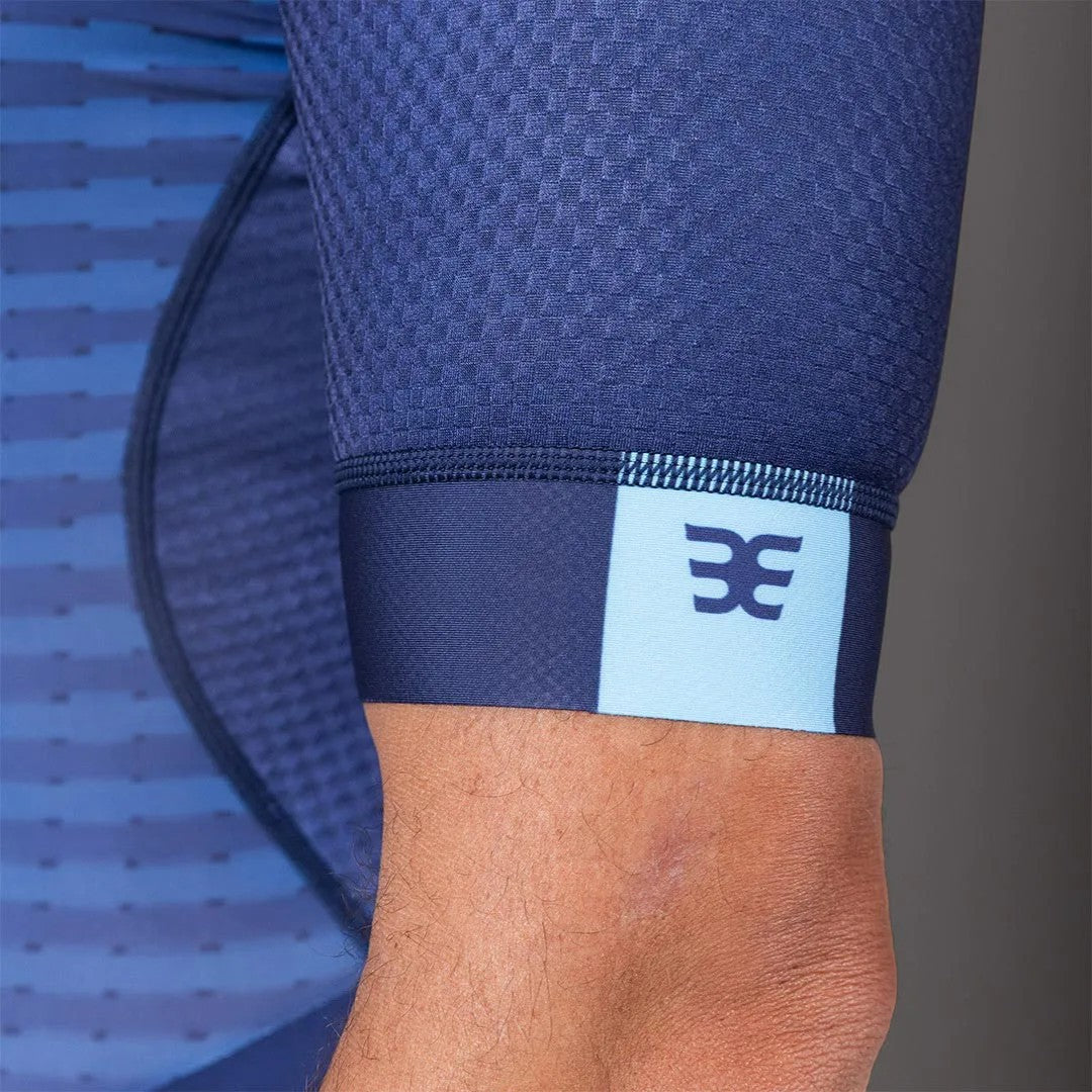 A região frontal e as mangas contam com tecido de construção aerodinâmica, desenvolvido para reduzir o arrasto do vento no ciclismo e melhorar a eficiência energética do atleta. Sua textura técnica e ajuste ao corpo contribuem diretamente para ganho de desempenho.