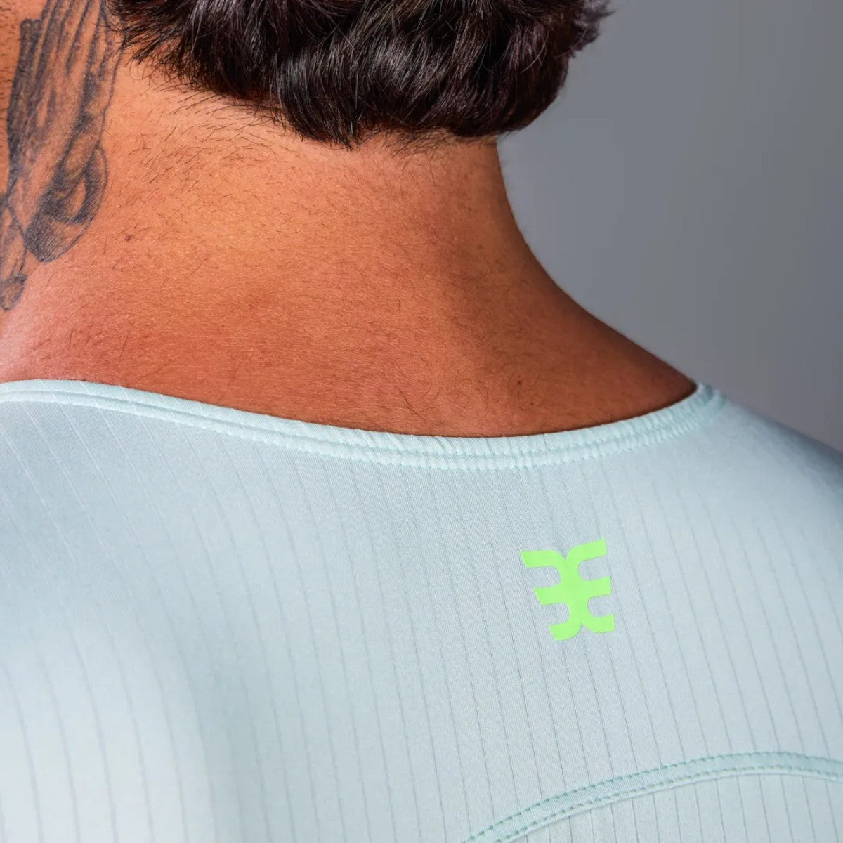 A parte superior, em Tech Square®, alia leveza, secagem rápida e excelente respirabilidade, características que elevam o conforto térmico durante a corrida e nas transições. Já as mangas em Wind Skin® favorecem a aerodinâmica e protegem contra o vento, contribuindo para a performance nos trechos mais velozes.